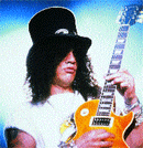 And last but not least, there's SLASH. Now this is the coolest guy in the WORLD to me. I've only seen him play live and up close once, but I've got hours and hours worth of him on video tape. Now he's truly the myth and legend. Doesn't he look like some sort of angelic being with all that bright light behind him? Whew! Ok, maybe I'm going overboard. I can't help it. Man, I'd come home everyday from jr. high and watch him play. Gilby inspired me to play, but Slash molded my style. Anyway, sorry there are no pics of the band yet. We'll get some pics scanned in later. No worries. That's it for now. Email me because I get so lonely.
